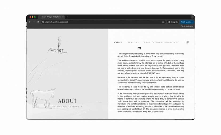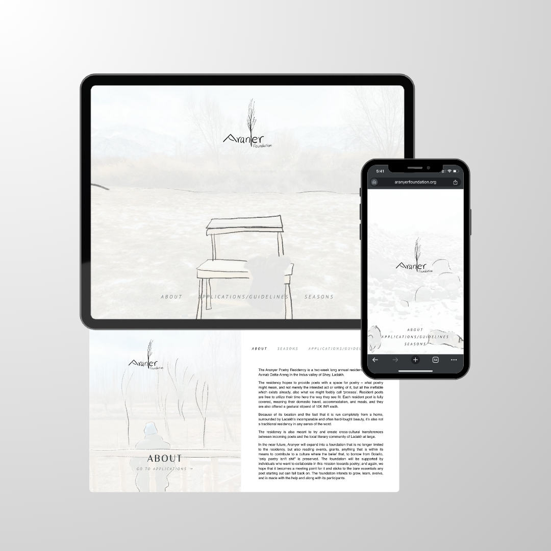 Aranyer Foundation is a poetry residency based in the Indus Valley of Shey, Ladakh. When the team reached out, they needed a website and visual identity that could reflect the spirit of the space — rooted, intimate, and radical.